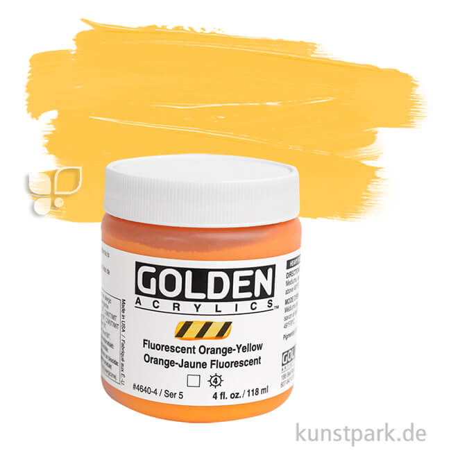 GOLDEN Fluorescent Leuchtfarbe, Fluoreszierende Acrylfarbe, 119 ml Einzelfarbe | Orange-Yellow
