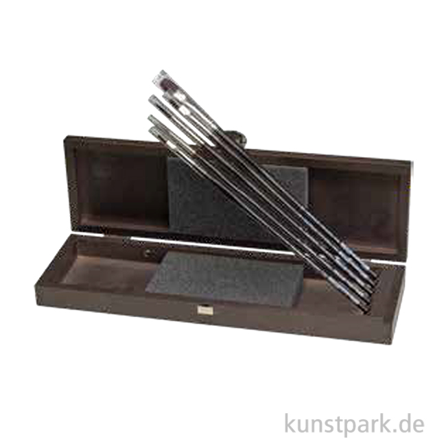 Hochwertiges Öl- und Acrylpinsel Set in einem edlen, dunkelbraun gebeizten Pinselkasten aus deutschem Buchenholz. Mit integriertem Pinselhalter, Schaumstoffeinlage und Luftlöchern zur Belüftung der Pinselhaare. Ein tolles Geschenk für Acryl- und Ölmaler!