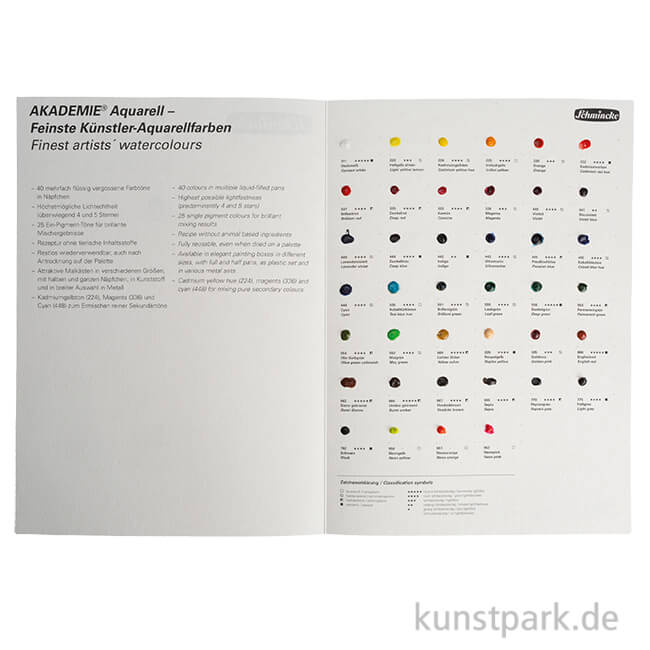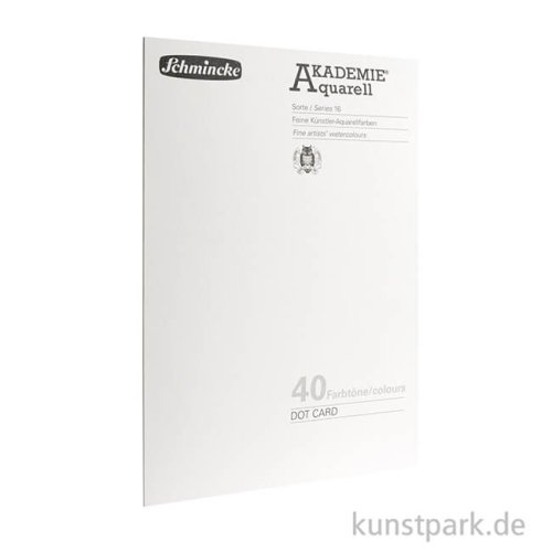 Mit dieser Dot Card kannst Du die 40 Standard Farbtöne der Schmincke Akademie Aquarellfarben ganz einfach ausprobieren und Deine Lieblingsfarben entdecken. Die Farbmuster lassen sich mit etwas Wasser anlösen und vermalen.
