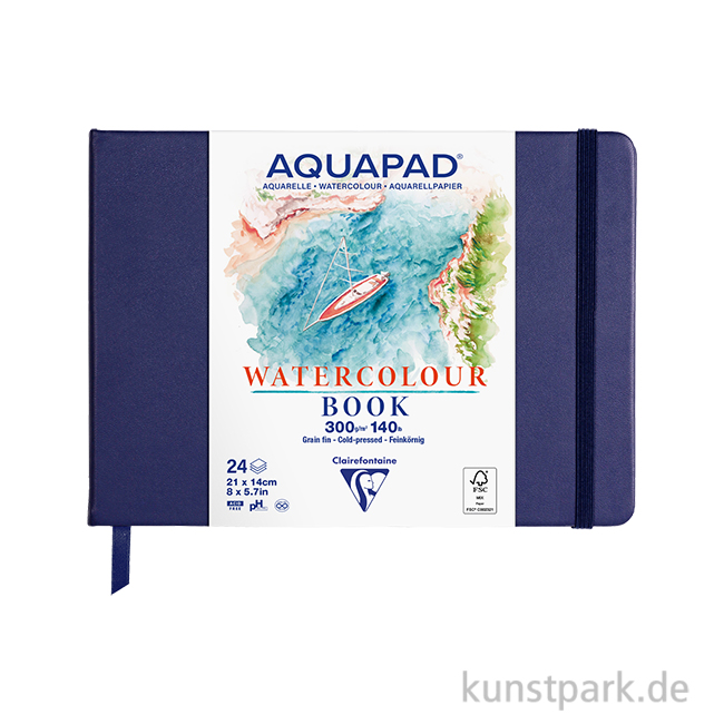 Das Aquarell Skizzenbuch enthält starkes Aquarellpapier aus reiner Zellulose in preiswerter Studienqualität. Die feinkörnige Oberfläche macht es vielseitig einsetzbar. Der samtblaue Hardcover Einband mit Verschluss und Lesezeichen ist ideal für unterwegs.