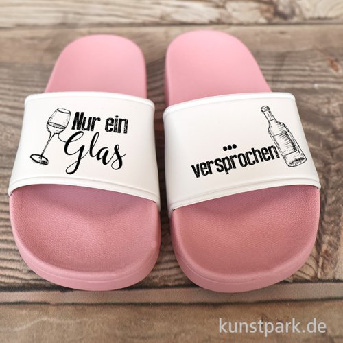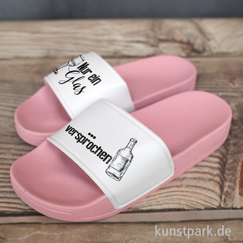 Infos über Badelatschen, Rosa-Weiß, Bedruckt, Design, Nur ein Glas