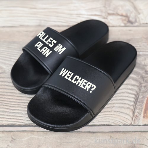 Badelatschen, Schwarz, Bedruckt, Design, Alles im Plan