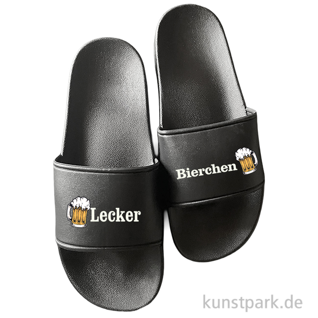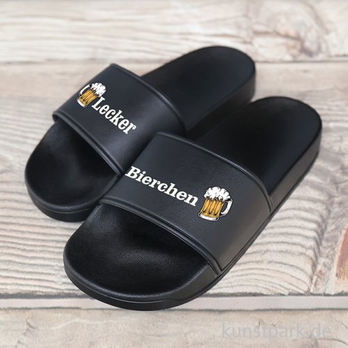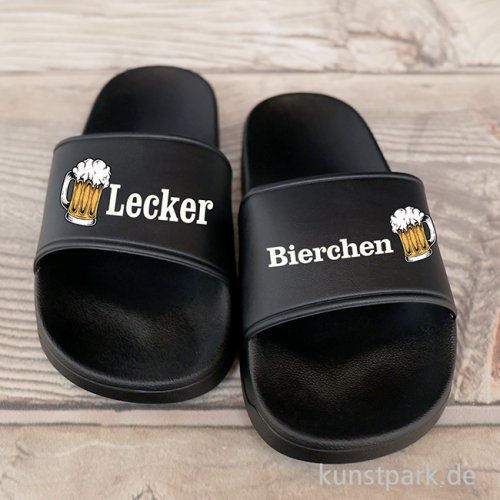Infos über Badelatschen, Schwarz, Bedruckt, Design, Lecker Bierchen