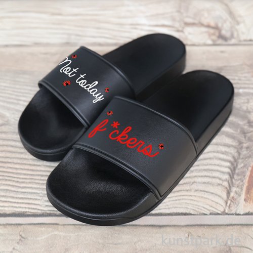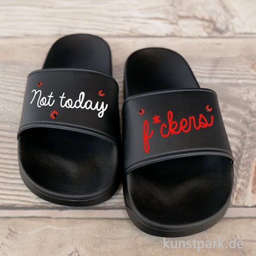 Badelatschen, Schwarz, Bedruckt, Design, Not today