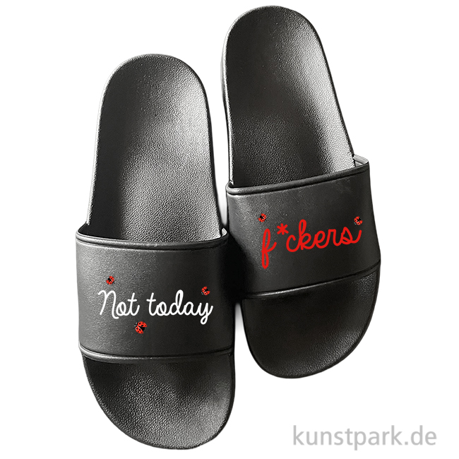 Infos über Badelatschen, Schwarz, Bedruckt, Design, Not today