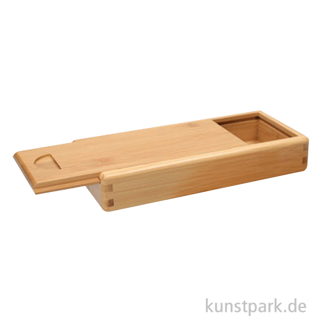 Die hochwertige Bambusschatulle aus Echtholz besitzt einen Schiebedeckel mit magnetischer Arretierung. Sie eignet sich ideal zum Aufbewahren von Stiften, Pinseln, Pastellkreiden, Kleinkram und diversen Utensilien.