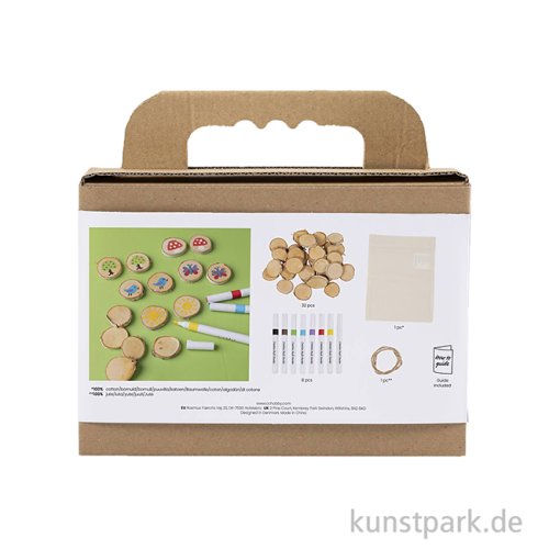 Basteln, malen, spielen! Mit diesem Set gestalten Kinder ihr eigenes Memory- und Drei-gewinnt-Spiel. Einfach Holzscheiben bemalen, Figuren gestalten und losspielen. Es enthält Holzscheiben, Marker, Stoffbeutel und eine Jutekordel für kreativen Spielspaß.