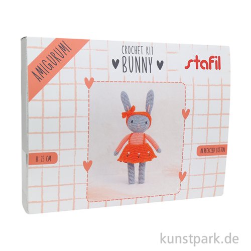 Häkle einen niedlichen Hasen! Die Amigurumi Sets von Stafil enthalten Baumwollgarn in 3 Farben, Stickgarn für Details, Füllwatte und eine Anleitung zum Häkeln der süßen Amigurumi Figur. Du brauchst nur noch eine Häkelnadel (am besten 2,5 mm).