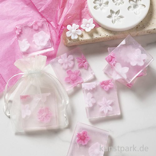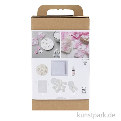 So einfach kannst Du hübsche Blumenseifen selber machen! Das Set enthält alle benötigten Materialien und eine Anleitung zur Seifenherstellung. Mit Seifenbasis, Seifenfarbe und Seifenformen kannst Du direkt loslegen.