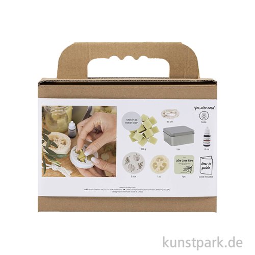 So einfach kannst Du Seifen selber machen! Das Set enthält alle benötigten Materialien und eine Anleitung. Mit Olivenseifenbasis, Luffa-Schwamm, Form, Farbe, Schnur und Metallbox kannst Du direkt loslegen und kleine Muschelseifen für unterwegs gießen.