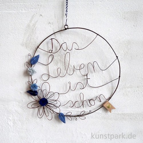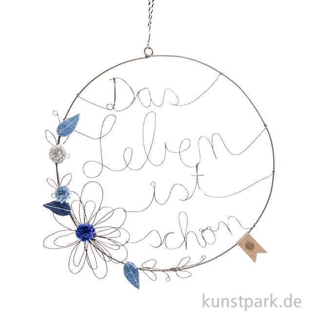 Das Leben ist schön! Der elegante Blumenkranz aus handgebogenem Draht mit bunten PomPoms und Filzdetails verschönert Dein Zuhause. Er lässt sich einfach aufhängen und wird überall zum Blickfang. Ein bezauberndes Kunsthandwerk Design von goold old friends.