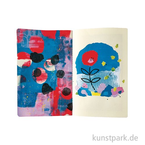 Gestalte Dein Journal mit den beliebten Gelli Arts Plates und einzigartigen Prints! Das Set enthält eine 3x5" Gelli Arts Druckplatte, ein Journal mit 20 Seiten, eine Walze, Schablone, Strukturkarton, Papier, Punchinella, Garn und eine Anleitung.