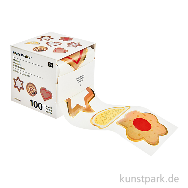 Weihnachtliche Sticker mit zuckersüßen Keks und Plätzchen Motiven. Die dekorativen Aufkleber eignen sich wunderbar zum Verzieren von Karten, Geschenken, Journals und Scrapbooks. Eine Rolle enthält 100 Aufkleber.