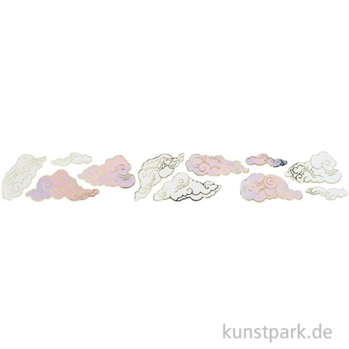 Hübsche Sticker mit zarten Wolken Motiven und glänzenden Hot Foil Akzenten. Die dekorativen Aufkleber eignen sich wunderbar zum Verzieren von Karten, Geschenken, Journals und Scrapbooks. Eine Rolle enthält 100 Stück.
