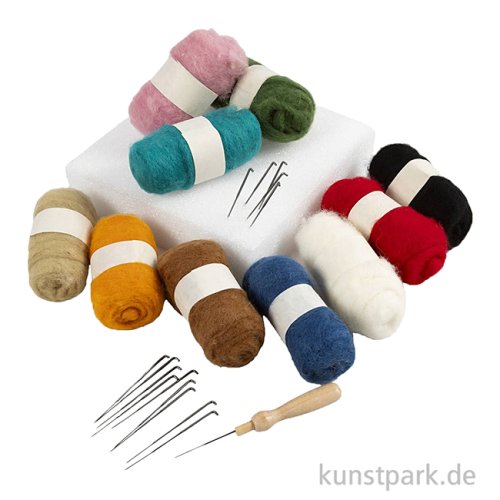 Starter Set zum Filzen mit umfangreichem Zubehör. Das Set enthält neben der Wolle auch das passende Werkzeug und lädt zum sofortigen Start ein.