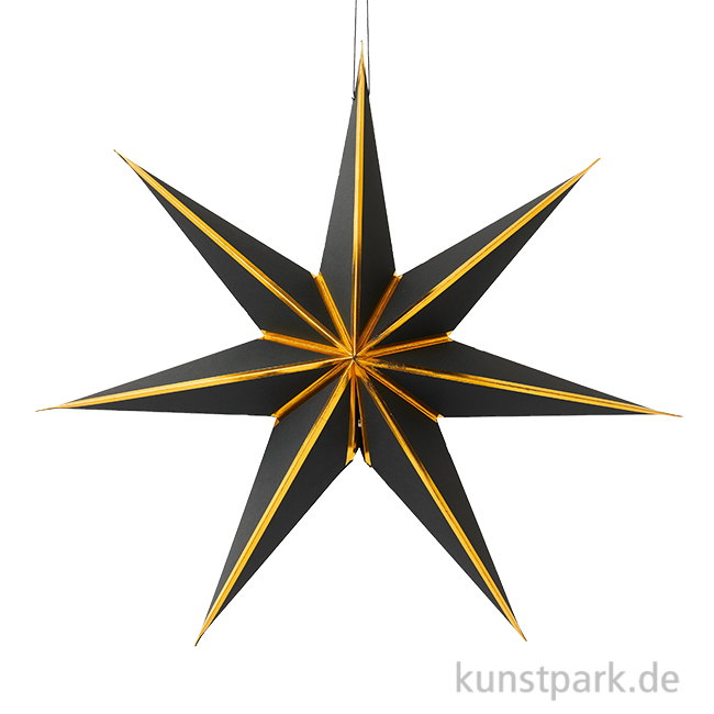 Feiere Weihnachten mit Stil! Der elegante Papierstern in Schwarz und Gold sorgt für eine festliche Stimmung und ist ein Hingucker in jedem Raum. Er ist 45 cm groß und lässt sich ganz einfach aufhängen.