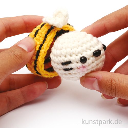 Das Amigurumi Bastelset enthält alles, was Du zum Häkeln einer niedlichen Biene benötigst: Garn in diversen Farben, Häkelnadel, Maschenmarkierer, Sicherheitsaugen und -nase, Füllwatte, Schlüsselring und eine einfache Anleitung. Ideal für Anfänger!