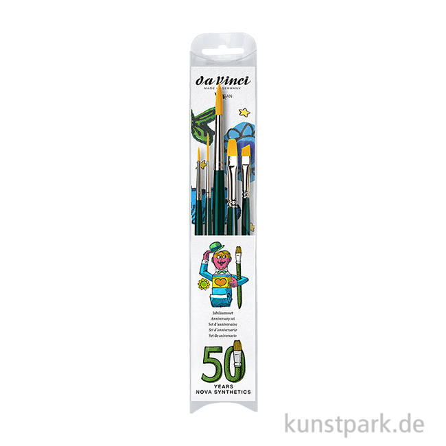 Die beliebte Nova Pinselserie von da Vinci feiert 50-jähriges Jubiläum! Zur Feier gibt es dieses 5-teilige Pinselset mit diversen Synthetikpinseln als limitierte Sonderedition. Ideal für Aquarell, Acryl, Gouache, Öl und viele weitere Maltechniken.