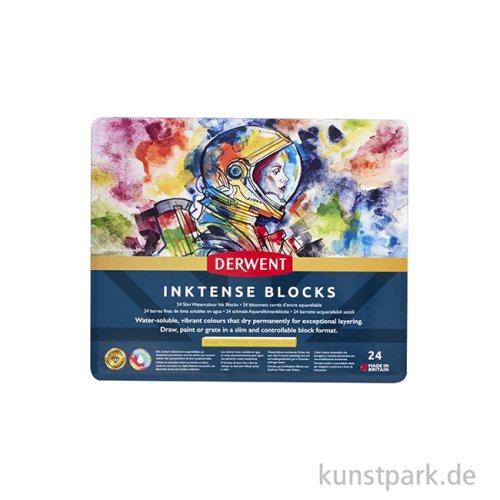 Infos über Derwent INKTENSE, 24 Aquarellkreide Blöcke im Metalletui