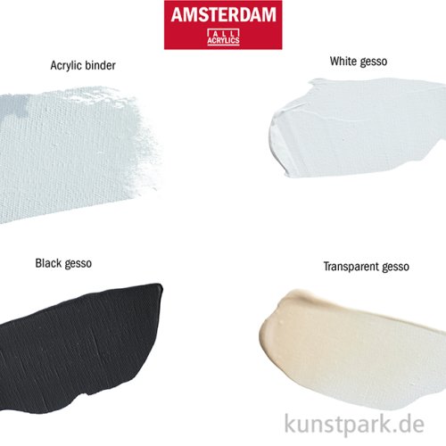 Das Prep & Prime Malmittel Set aus der Talens AMSTERDAM Serie enthält alles, was Du brauchst, um Deinen Malgrund optimal vorzubereiten: Jeweils 120 ml Acryl Bindemittel, transparentes Gesso, schwarzes und weißes Gesso. Ideal zum Ausprobieren!