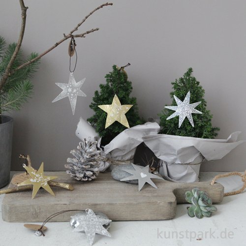 Der festliche Stern aus bedruckter Capizmuschel schmückt gerne Fenster, Äste oder den Weihnachtsbaum. Ein bezauberndes Kunsthandwerk Unikat von goold old friends. Inklusive kleinem Metall-und Papieranhänger.
