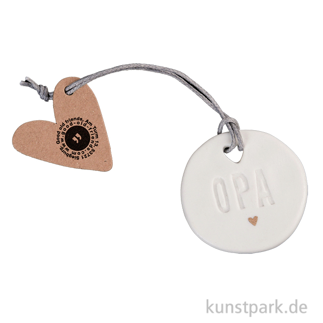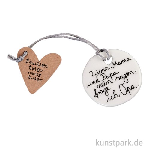 Wenn Mama und Papa nein sagen, frage ich Opa. Der Geschenkanhänger aus feinem Porzellan erwärmt die Herzen lieber Familienmitglieder und passt in jede Hosentasche. Ein bezauberndes Kunsthandwerk Design von goold old friends.