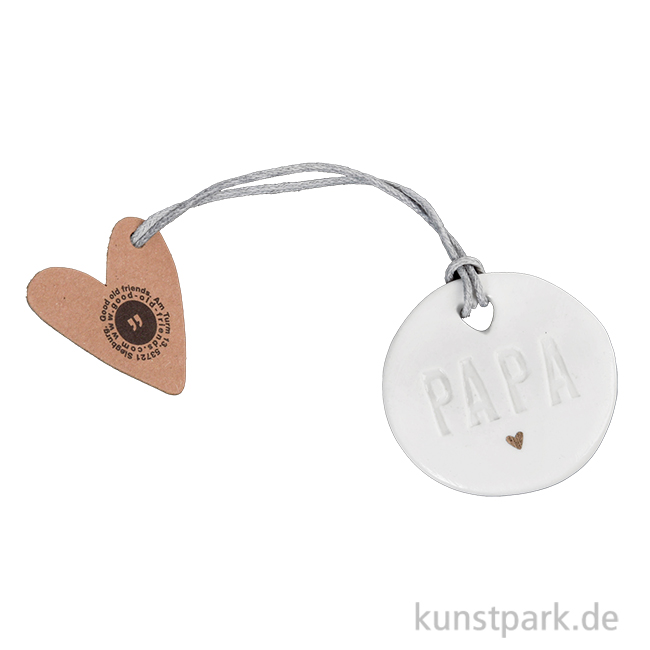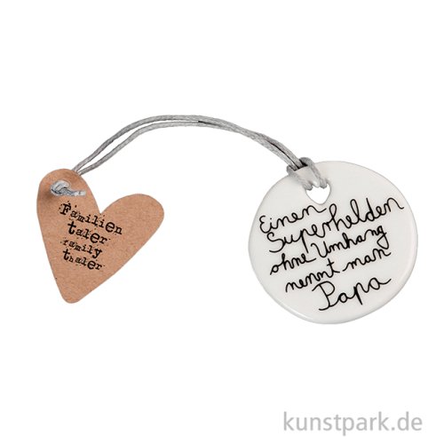Einen Superhelden ohne Umhang nennt man Papa. Der Geschenkanhänger aus feinem Porzellan erwärmt die Herzen lieber Familienmitglieder und passt in jede Hosentasche. Ein bezauberndes Kunsthandwerk Design von goold old friends.