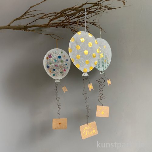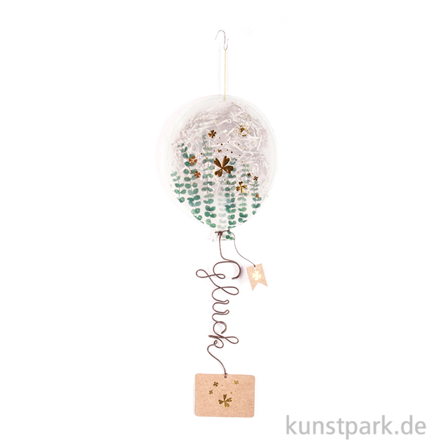 Der zauberhafte Wunschballon aus handgebogenem Draht und genähtem Transparentpapier ist ein Glückwunsch der ganz besonderen Art. Inklusive festlicher Drahtschrift und Karte. Ein bezauberndes Kunsthandwerk Unikat von goold old friends.