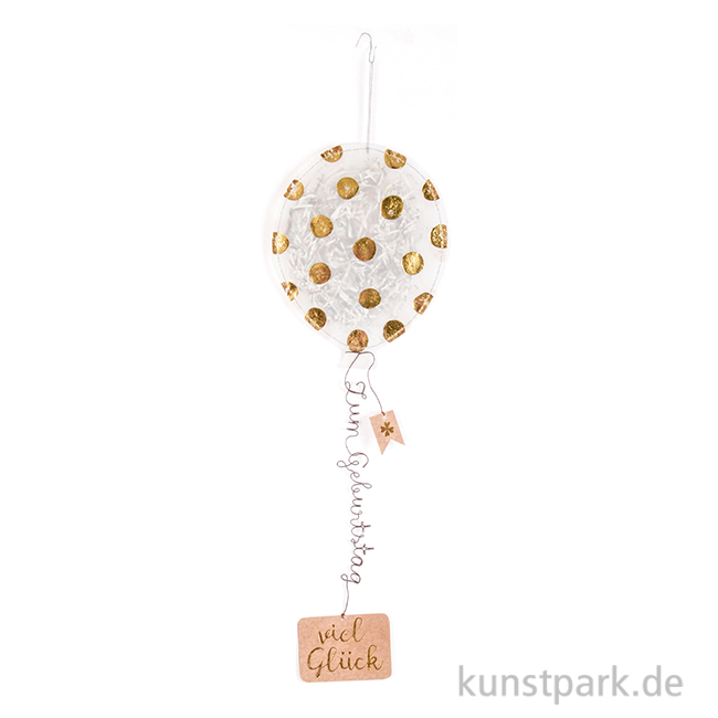 Der zauberhafte Wunschballon aus handgebogenem Draht und genähtem Transparentpapier ist ein Glückwunsch der ganz besonderen Art. Inklusive festlicher Drahtschrift und Karte zum Geburtstag. Ein bezauberndes Kunsthandwerk Unikat von goold old friends.