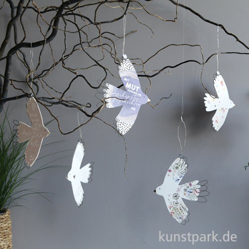 Dieser Seelenvogel trägt ein goldenes Herz mit sich und erfreut jedes Herz. Er besteht aus handgebogenem Draht und zart bedruckter Pappe, sowie feinem Draht zum Aufhängen. Ein bezauberndes Kunsthandwerk Unikat von goold old friends.