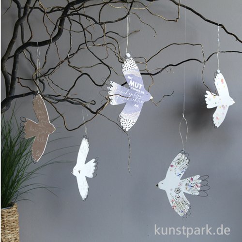 Dieser Seelenvogel trägt eine persönliche Botschaft mit sich und erfreut jedes Herz. Er besteht aus handgebogenem Draht und zart bedruckter Pappe, sowie feinem Draht zum Aufhängen. Ein bezauberndes Kunsthandwerk Unikat von goold old friends.