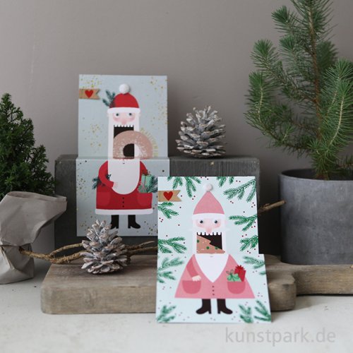 Süße Weihnachtsgrüße: Diese originelle Weihnachtskarte zum Aufklappen offenbart den Weihnachtsmann beim Plätzchen naschen. Ein bezauberndes Kunsthandwerk Design von goold old friends.