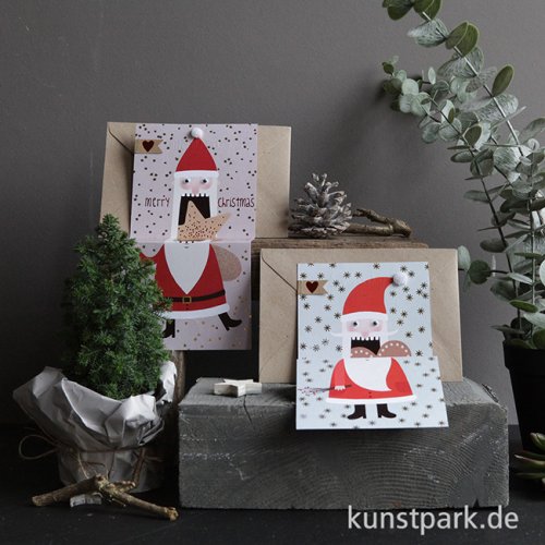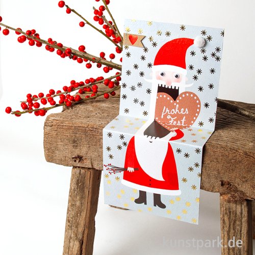 Süße Weihnachtsgrüße: Diese originelle Weihnachtskarte zum Aufklappen offenbart den Weihnachtsmann beim Plätzchen naschen. Ein bezauberndes Kunsthandwerk Design von goold old friends.