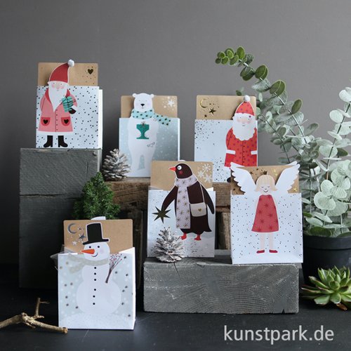 Eine liebevoll gestaltete Geschenktasche aus Papier. Die weihnachtliche Geschenktüte lässt sich blitzschnell befüllen. Inklusive bedruckter Geschenkkarte. Ein bezauberndes Kunsthandwerk Design von goold old friends.