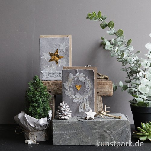 Diese kunstvolle Weihnachtskarte aus handgeschöpftem Papier verzaubert Deine Liebsten mit eingestreutem Glitter und verschiedenen Papierapplikationen. Ein bezauberndes Kunsthandwerk Unikat von goold old friends.