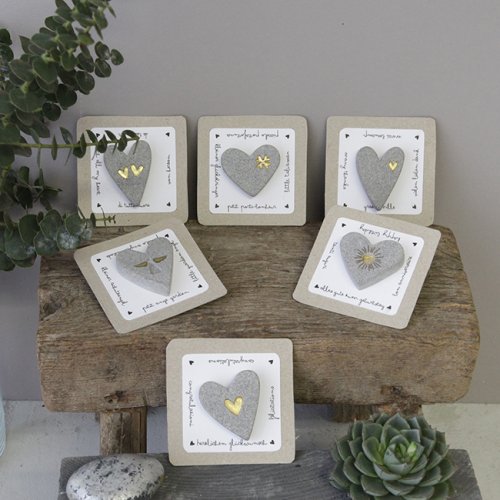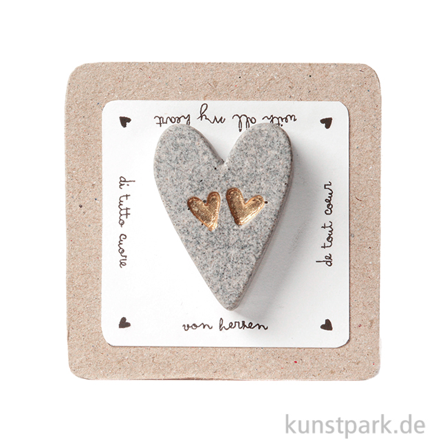 Anziehend schöne Glückwünsche: Das graue Terrazzo lässt die goldenen Details auf dem Herzmagnet richtig toll glänzen. Inklusive Pappkarte mit Metallinlay. Ein bezauberndes Kunsthandwerk Design von goold old friends.