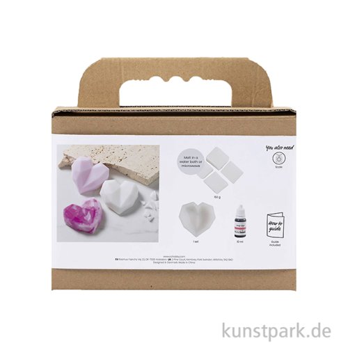 Kreiere liebevolle Herzseifen! Das Set enthält alle benötigten Materialien und eine Anleitung zur Seifenherstellung. Mit der Seifenbasis, Seifenfarbe und Seifenform kannst Du direkt loslegen und 3 formschöne Seifen gießen.