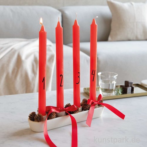 Verleihe Deinem Adventskranz das gewisse Etwas mit unseren roten Adventskerzen: Jedes Set enthält die Zahlen 1-4 und sorgt für eine festliche Stimmung. Mach die Adventszeit unvergesslich und genieße die Vorfreude bis zum großen Fest!