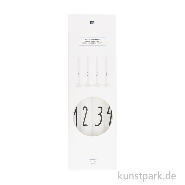 Verleihe Deinem Adventskranz das gewisse Etwas mit unseren weißen Adventskerzen: Jedes Set enthält die Zahlen 1-4 und sorgt für eine festliche Stimmung. Mach die Adventszeit unvergesslich und genieße die Vorfreude bis zum großen Fest!