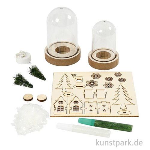 Toller Bausatz für 2 Kunststoffglocken mit einer winterlichen Landschaft mit allen Materialien. Ein wundervoller, dekorativer Hingucker für die Weihnachtszeit.