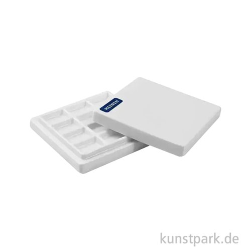 Eine hochwertige Mischpalette aus glasiertem Porzellan mit 12 Mischmulden und Deckel. Die kompakte Keramik Palette ist ideal für unterwegs und eignet sich besonders gut für wasserbasierte Farben, da diese lange feucht und gut mischbar bleiben.