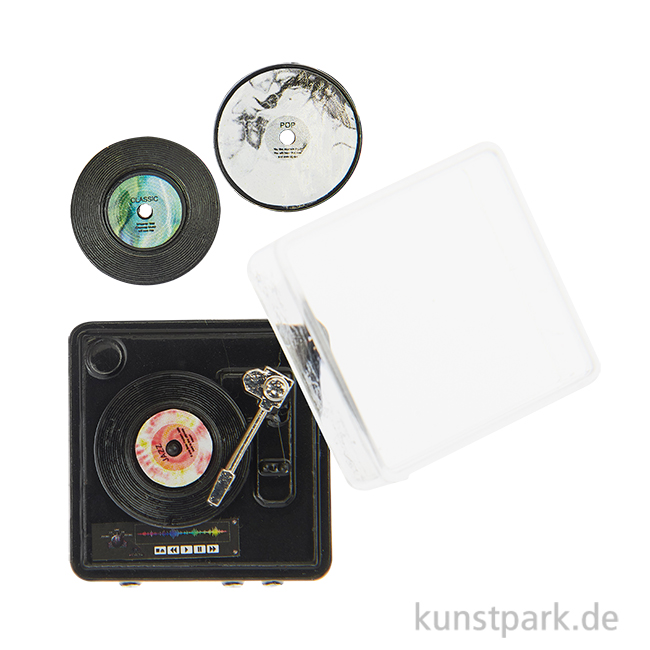 Der dekorative Plattenspieler im Miniformat besitzt eine realistische Optik und eignet sich wunderbar als Dekoration für kleine Minigärten, Modellbau oder Puppenhäuser. Er lässt sich prima mit passender Miniatur Deko kombinieren.