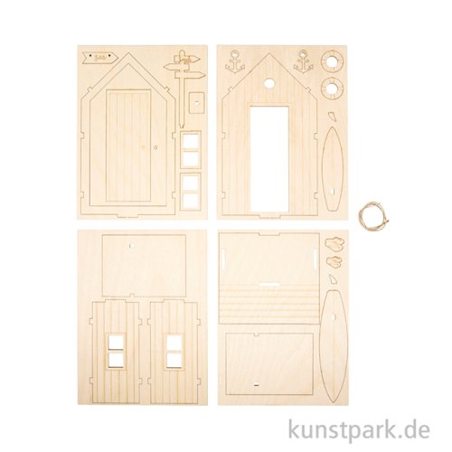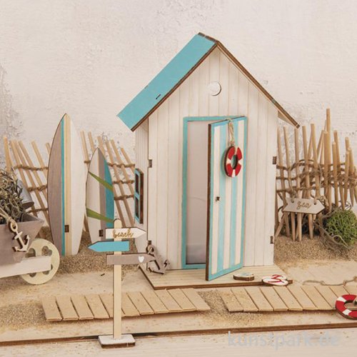 Bring Urlaubsstimmung in Dein Bastelzimmer: Mit diesem Holzbausatz entsteht eine niedliche Strandkabine, die Du beliebig bemalen und verzieren kannst. Kombiniere sie mit sommerlicher Deko und erschaffe eine kleine Miniaturwelt!
