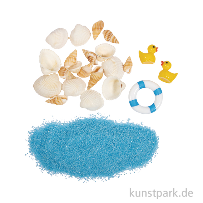 Urlaubsstimmung im Miniformat! Das Deko Set enthält Sand und diverse Strand Miniaturen mit realistischer Optik. Die sommerlichen Muscheln, Rettungsringe und Enten eignen sich wunderbar für Minigärten und saisonale Dekoakzente.