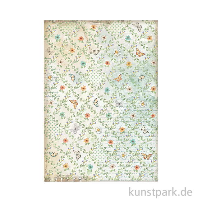 Stamperia Reispapier - Daisy Art Flowers And Butterfly Pattern, DIN A4