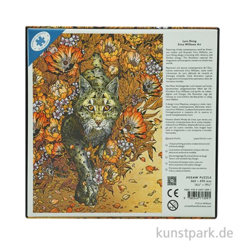 Ein hochwertiges Puzzle mit 500 präzise geschnittenen Teilen. Die samtig-weiche Oberfläche und Metallic-Folienakzente erwecken das Kunstwerk zum Leben. Das kunstvolle Design ist von einem Siebdruck der amerikanischen Künstlerin Erica Williams inspiriert.