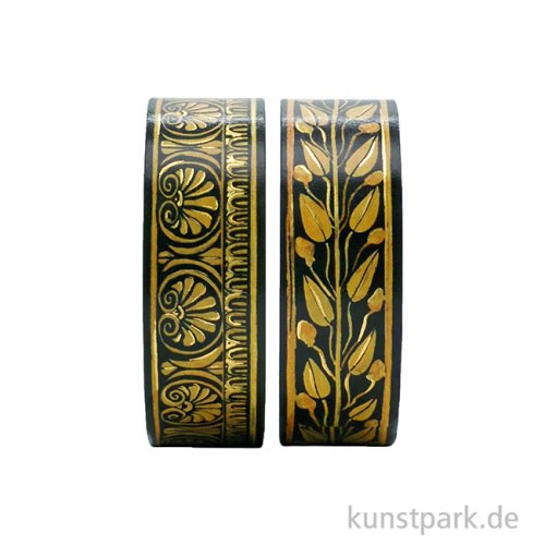Antike, griechische Muster verzieren diese hochwertigen Washi Tapes mit edlen Folienakzenten – bei uns erhältst Du die zauberhaften Deko-Klebebänder im aufeinander abgestimmten Doppelpack.