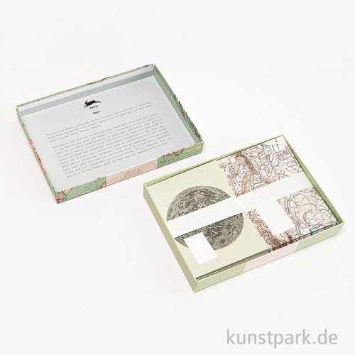 Für kunstvolle Briefe: Die hochwertige Geschenkschachtel enthält 40 detailreich illustrierte Briefpapiere in 4 Ausführungen mit dazu passenden Umschlägen, sowie 8 Klappkarten und 25 Aufkleber mit verschiedenen Karten Designs.