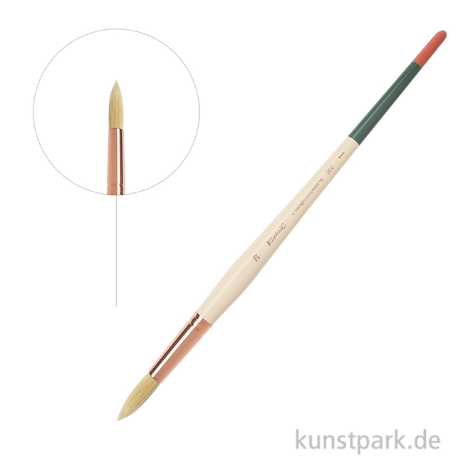 Die eleganten L'impressionniste Rundpinsel von Raphael werden in Frankreich handgefertigt. Die Synthetikfasern besitzen ähnliche Maleigenschaften wie Schweineborsten – mit weicherem Griff, gleichmäßigerem Farbauftrag und größerem Farbaufnahmevermögen.