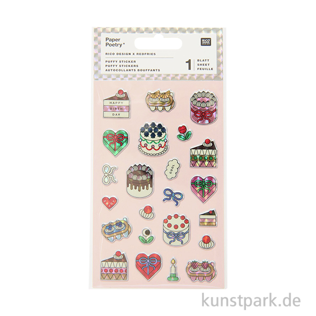 Infos über Puffy Sticker - Eye Candy, Torten, Happy Birthday, 1 Bogen